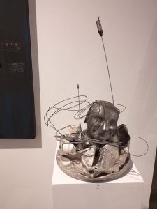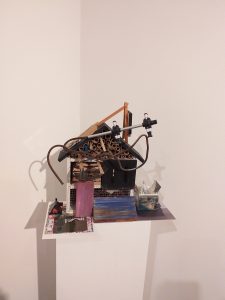Plastikarche,Objekt mit Holz und Plastikfiguren